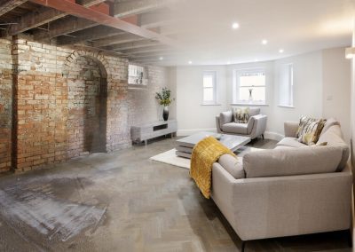 Creation of luxury 3 bed basement apartment under existing Edwardian house. Excavated, underpinned & extensive steelwork.