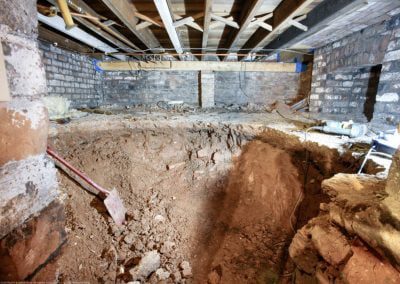 Create a new build basement under existing victorian terrace house, underpinning 3 metres. Cinema room, office, extra bedroom & shower room.